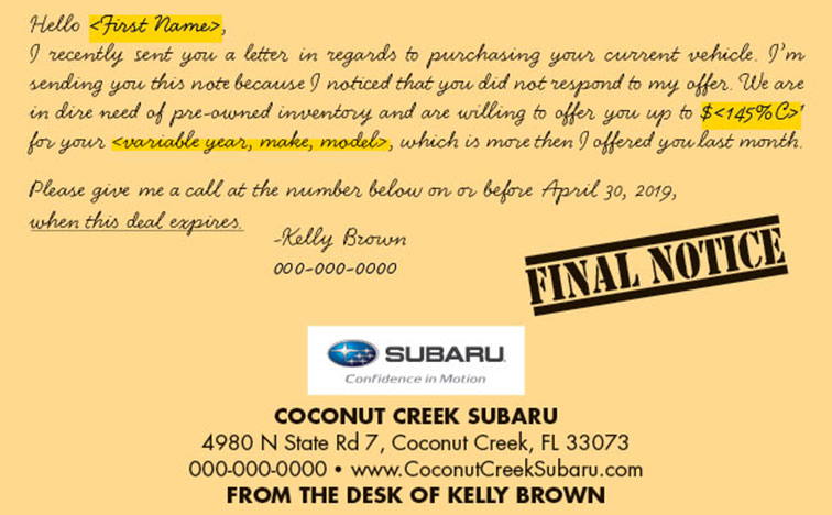 One of our strongest areas of expertise is building comprehensive, targeted, and eye-catching direct mail campaigns. Direct mail is one of the best ways to provide a quick rise in leads and sales through targeting consumers that are ready to buy, and conquesting customers from your competitors. Automotive direct mail gives added value and body to any automotive advertising strategy.